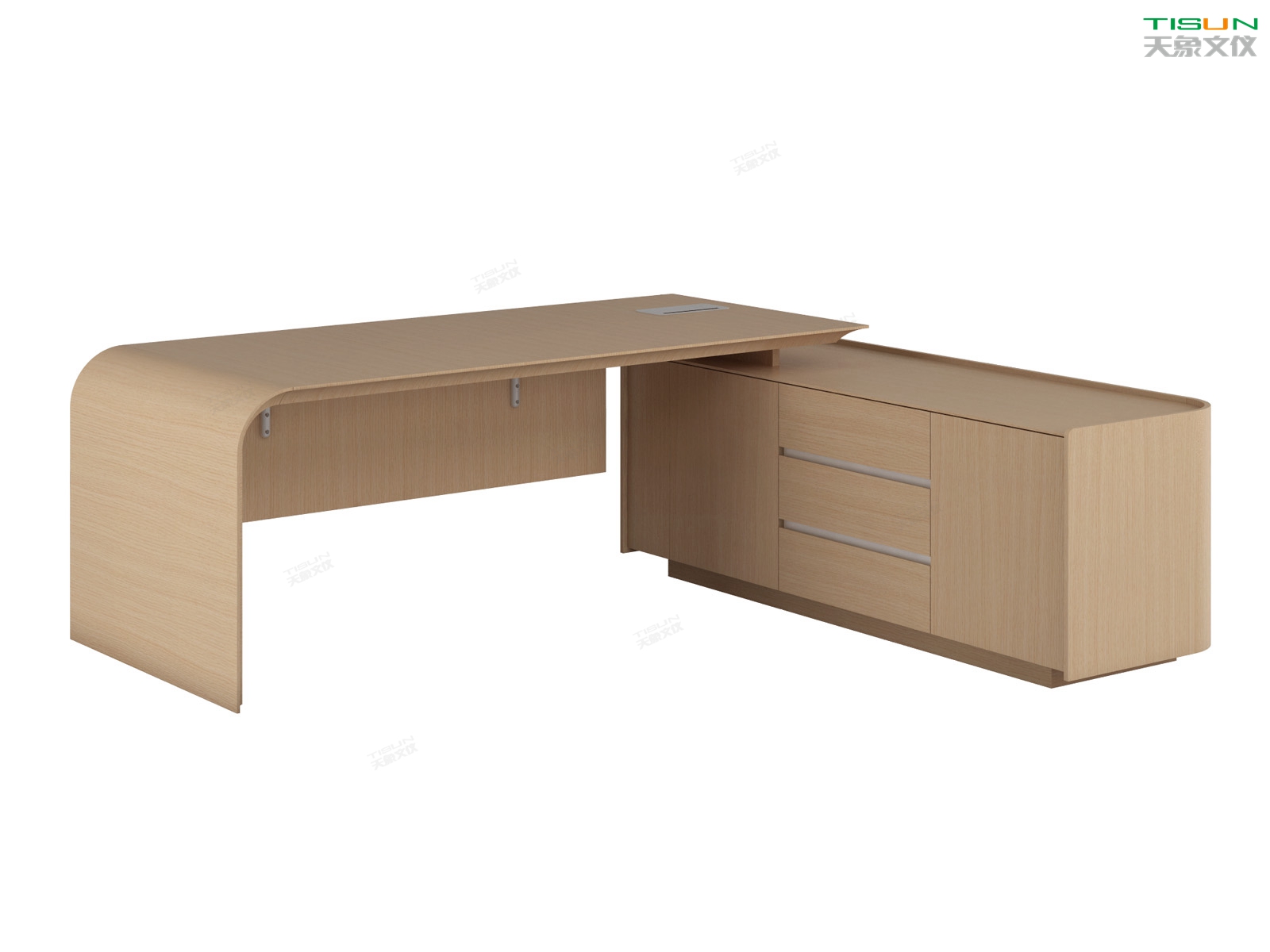 The office space has 2 floor to ceiling windows to meet the user's needs for illumination. This type of office furniture chooses light brown in color matching, and the turning lines are smooth. The class platform tripod and the overall customized office furniture adopt fashionable design and traditional technology. The large class platform series fully shows the taste and style of senior executives.
