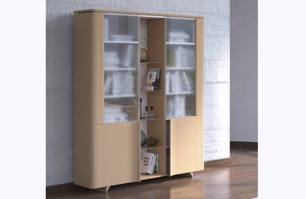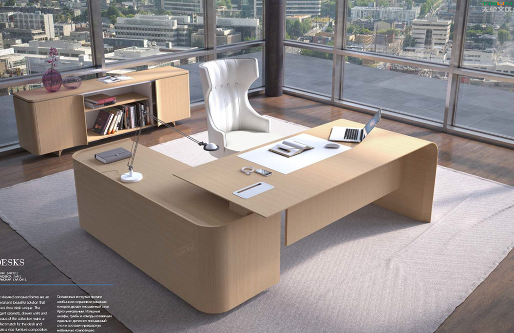 該辦公空間2面落地窗,為配合用戶對于光照度的需求。此款辦公家具在色彩搭配上選擇淺棕色,轉折線條流暢,班臺腳架及整體定制辦公家具用了時尚設計及傳統工藝,大班臺系列充分揚顯了高級行政人員的品位和格調。